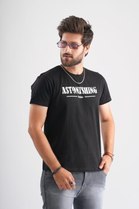 Astonishing Silver Print Black Party-Wear T-Shirt