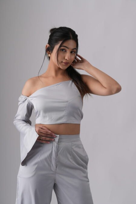 Back Open One Off Shoulder Top Pant Co-Ord Set