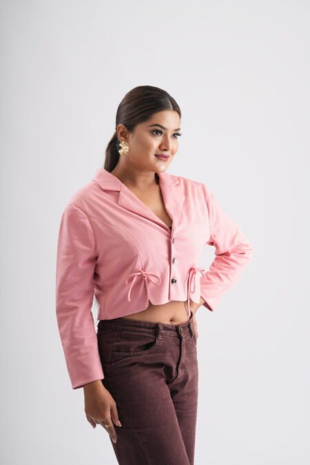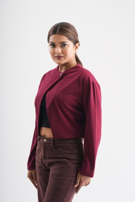 Crimson Solid Button Crop Shrug Overlay Jacket