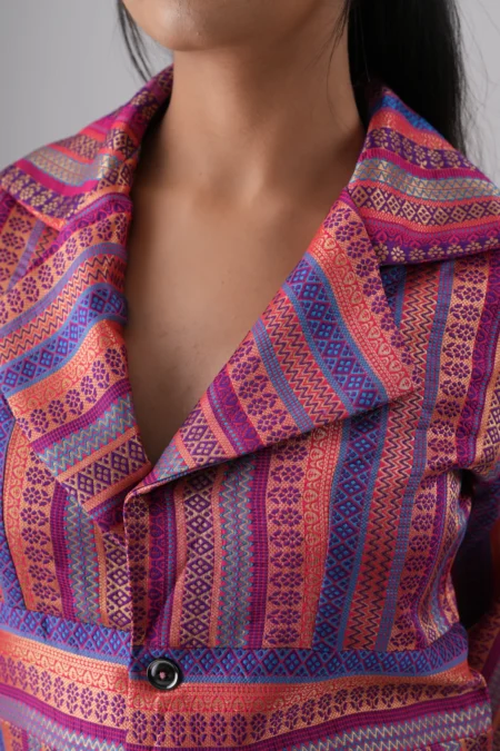 Make a statement with this elegant Salmon Pink Co-Ord Set, featuring a chic asymmetrical coat paired with a sleek bodycon skirt. Designed for a sophisticated yet modern look, this outfit is crafted from imported self-texture stretch fabric, ensuring both style and comfort.