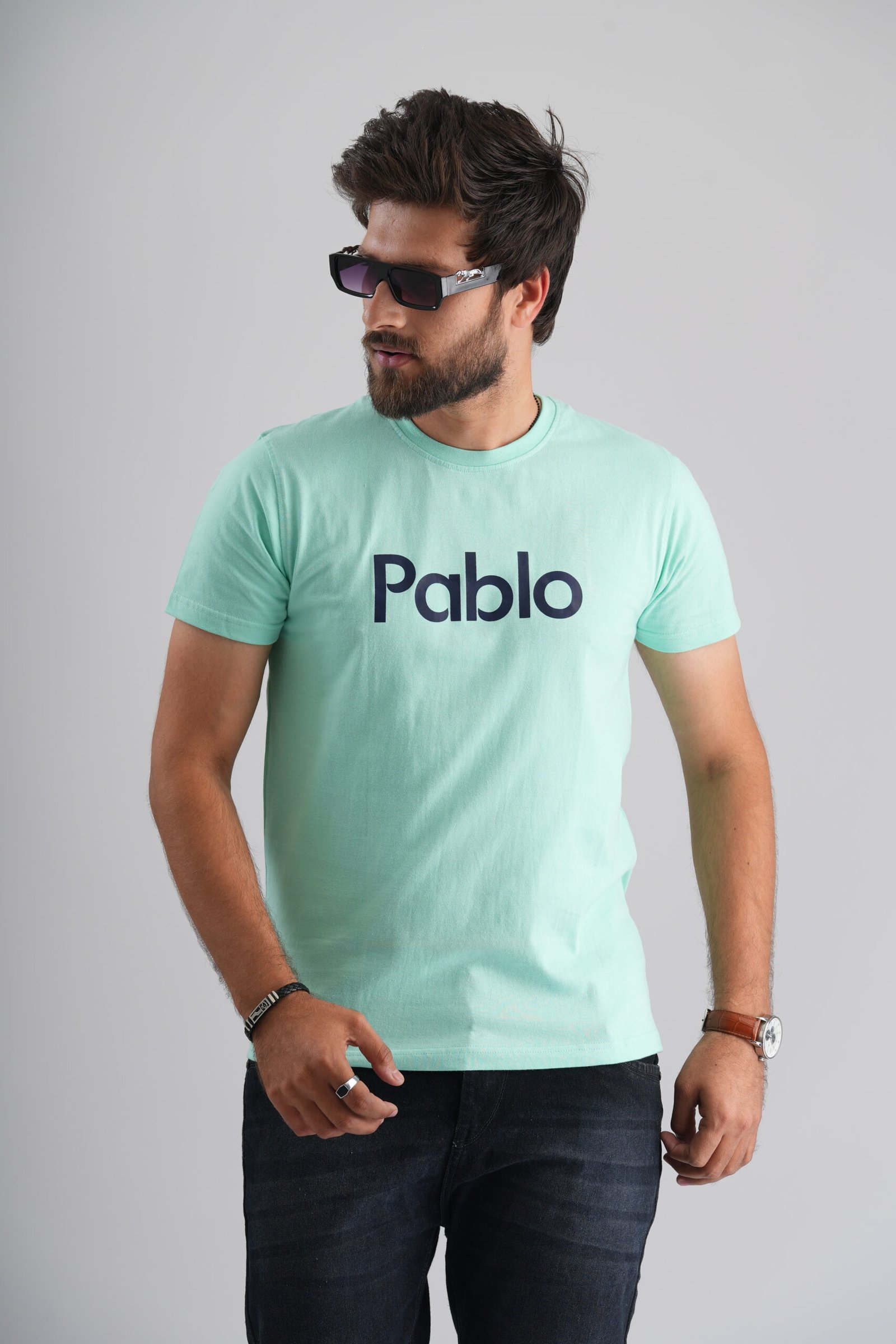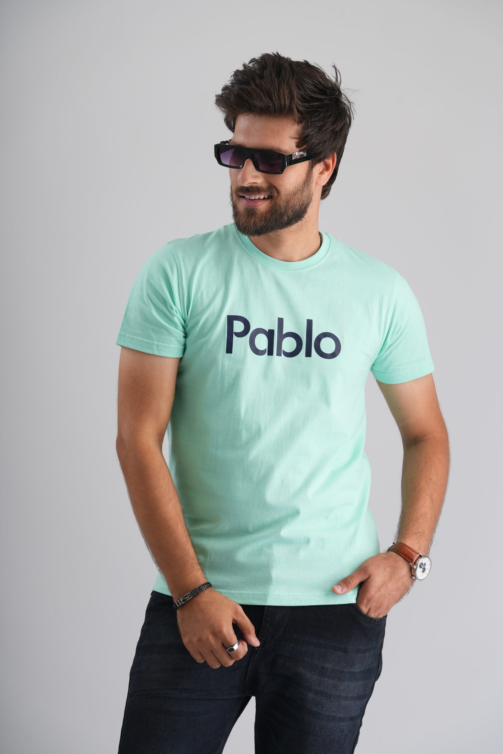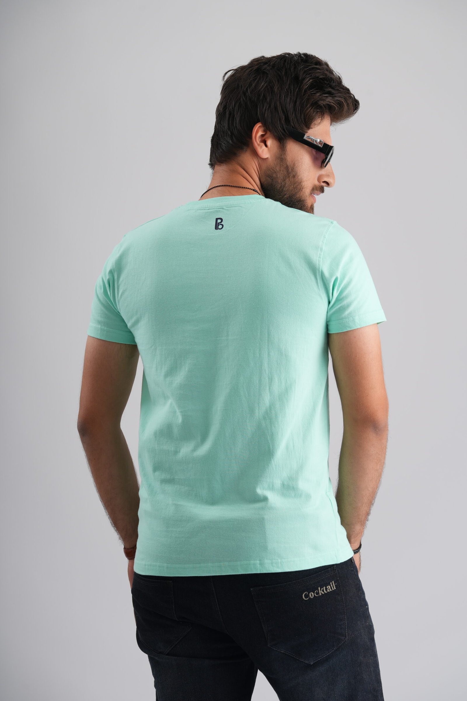 This Sea Green Round Neck T-Shirt adds vibrancy to your casual wardrobe and showcases intricate Pablo embroidery.