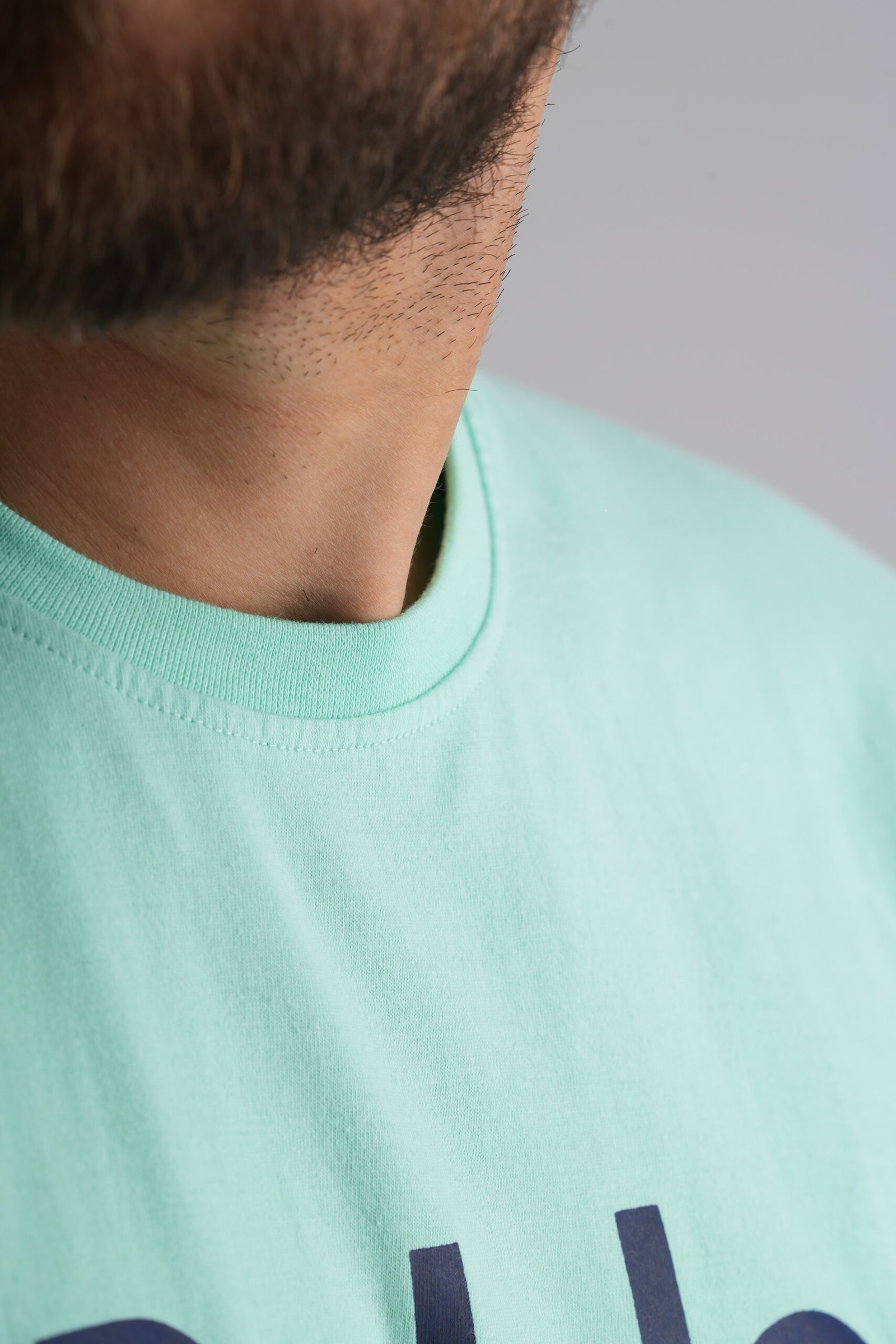 Sea Green Round Neck T-Shirt with Navy Blue Print