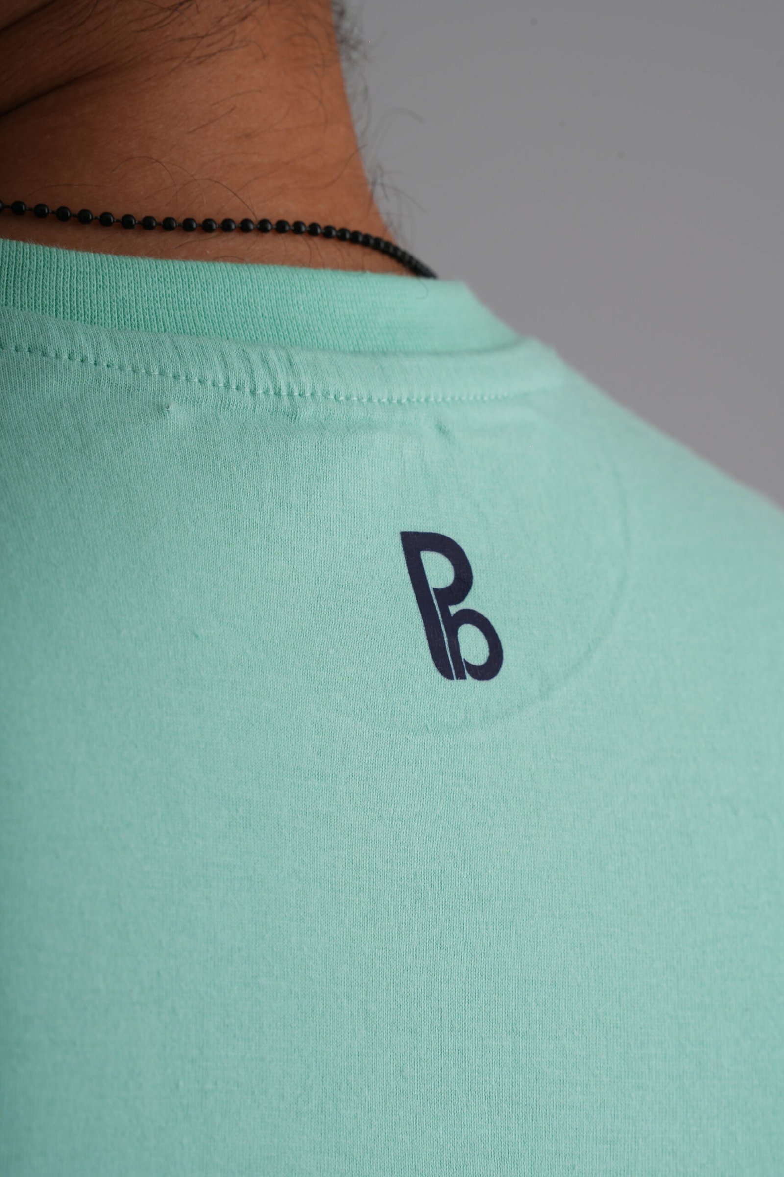 Dive into freshness with our Sea Green Round Neck T-Shirt complemented by a contrasting Navy Blue detail. Experience comfort and style in one.