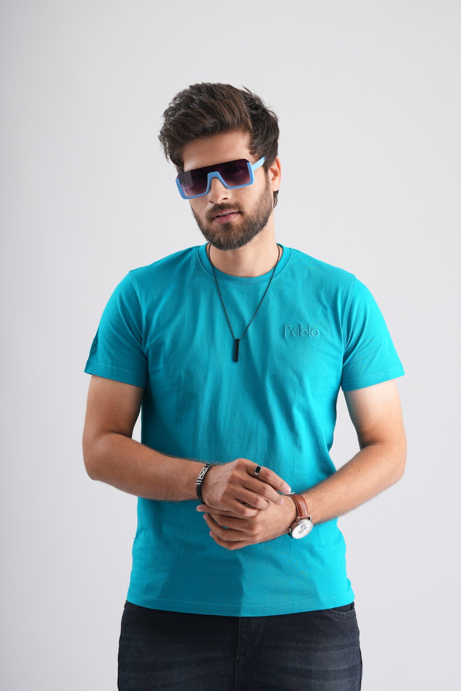 123 reviews for Sky Blue Round Neck T-Shirt with Pablo Embroidery