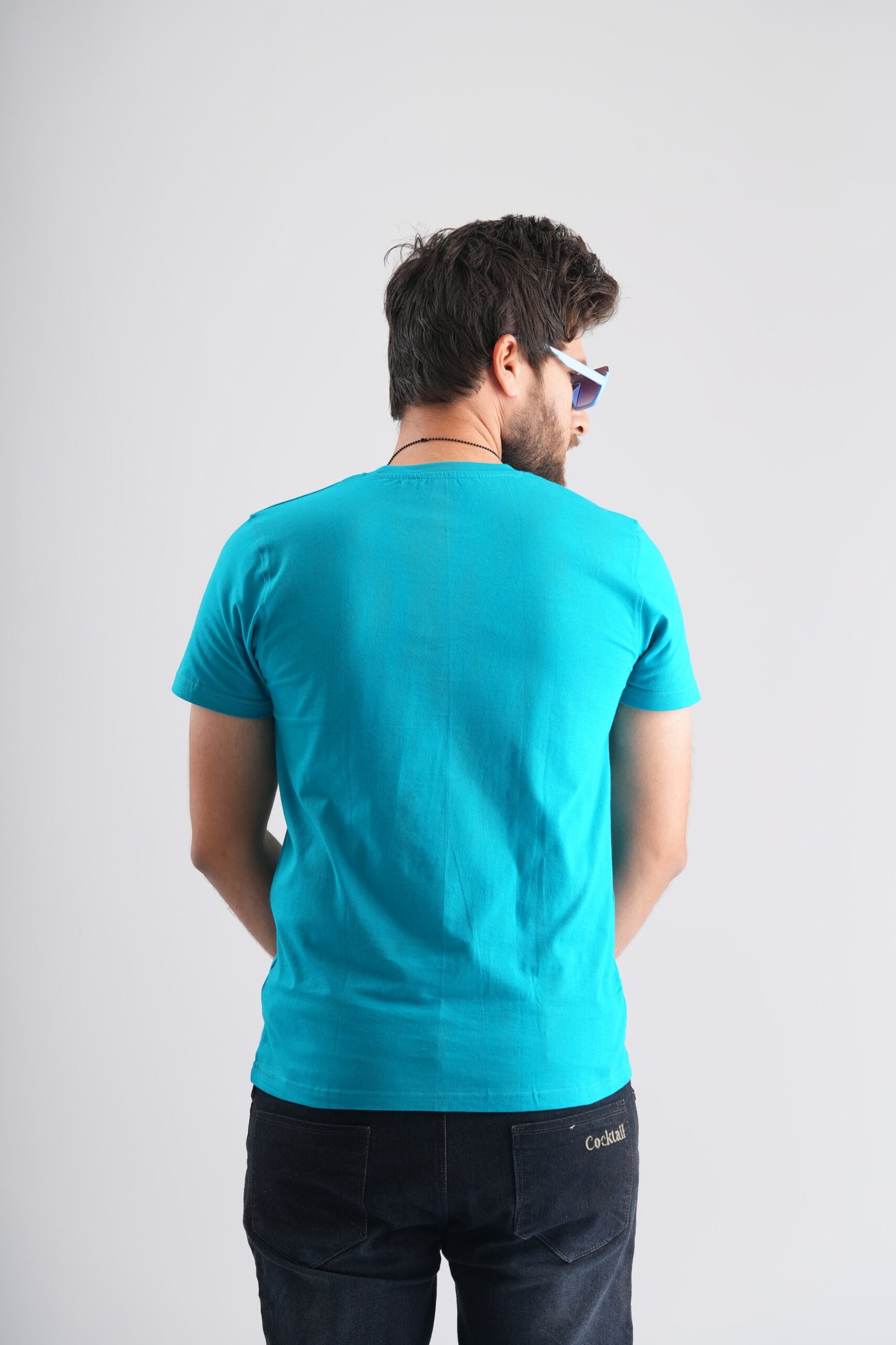 Elevate your style effortlessly with Cocktail Fashion, where comfort meets sophistication in this deep Sky Blue Round Neck T-Shirt. |