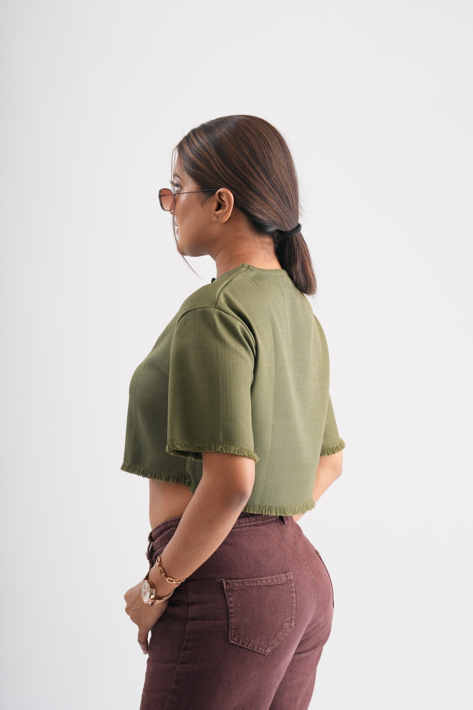 Refresh your wardrobe with this elegant Sage Green Crop Top, designed for a chic and effortless look. Made from imported linen, this top is lightweight, breathable, and perfect for all-day comfort. Its stylish crop length makes it a versatile piece, ideal for pairing with high-waisted jeans, skirts, or shorts.