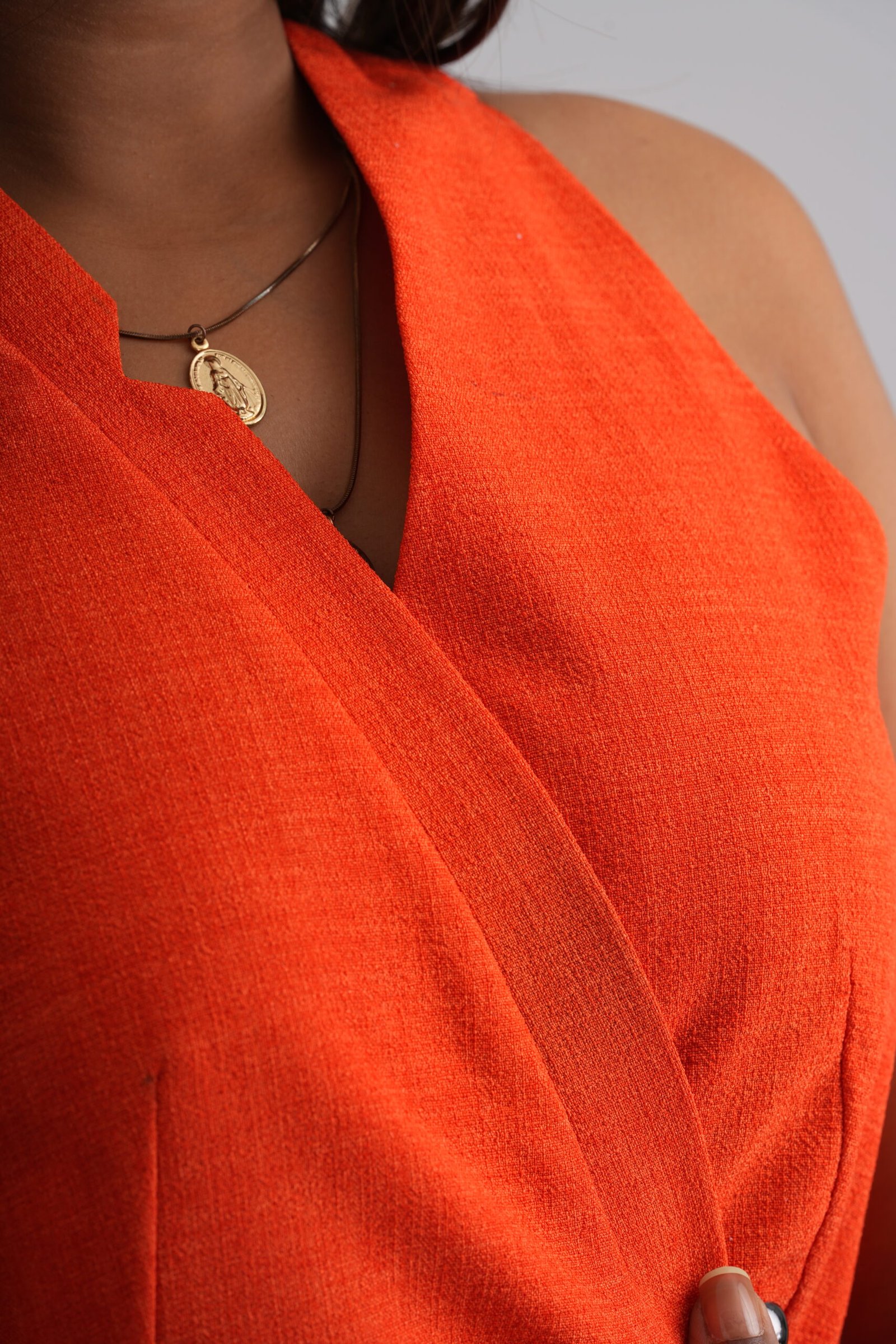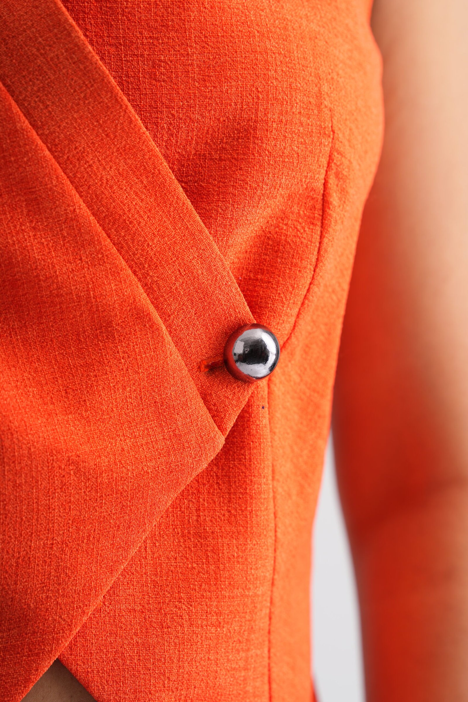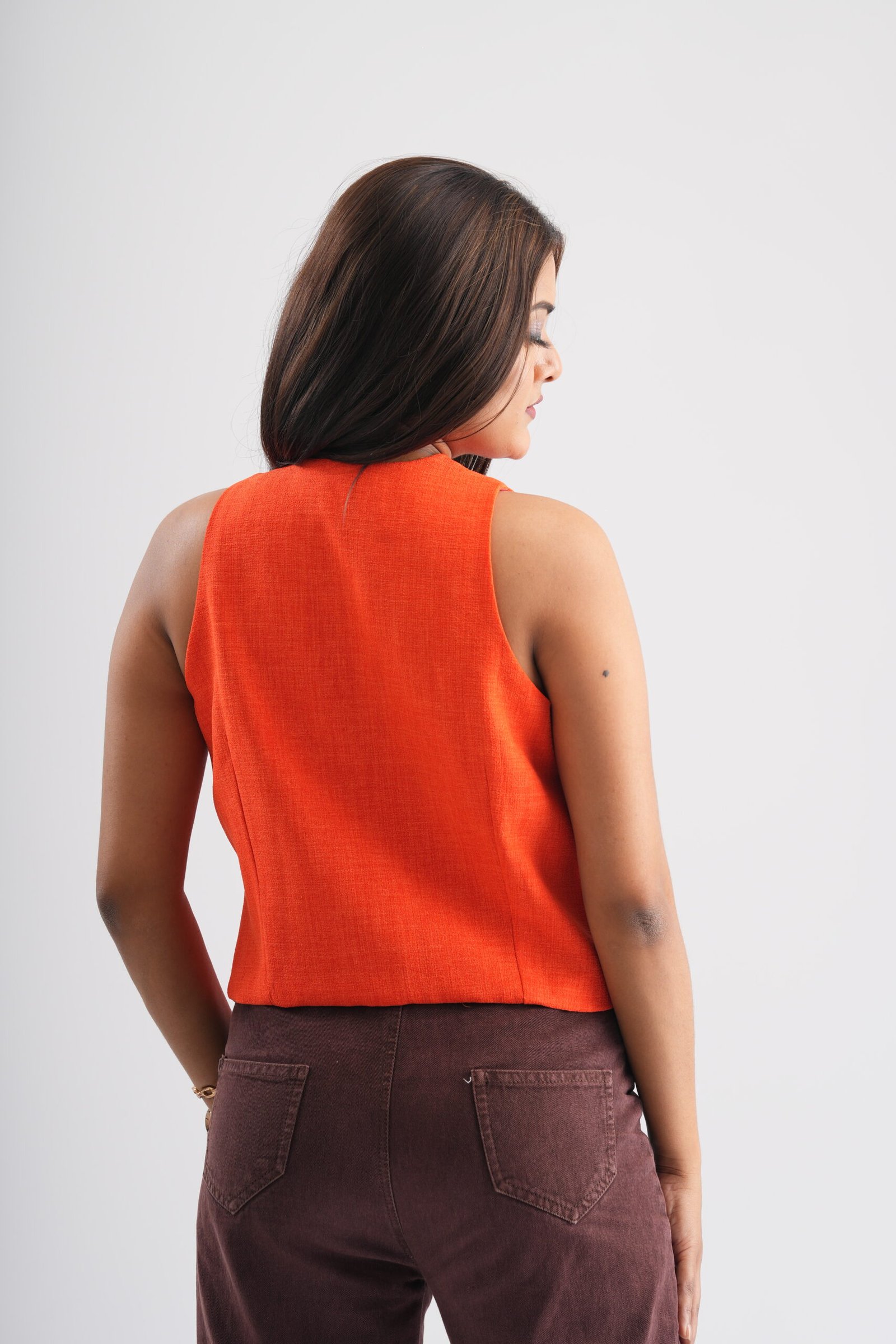 Add a touch of elegance to your outfit with this stylish Women’s Marigold Overlay Waistcoat in a vibrant orange shade. Designed for a chic and sophisticated look, this waistcoat is crafted from imported Turkey slub, offering a premium feel and comfortable fit.