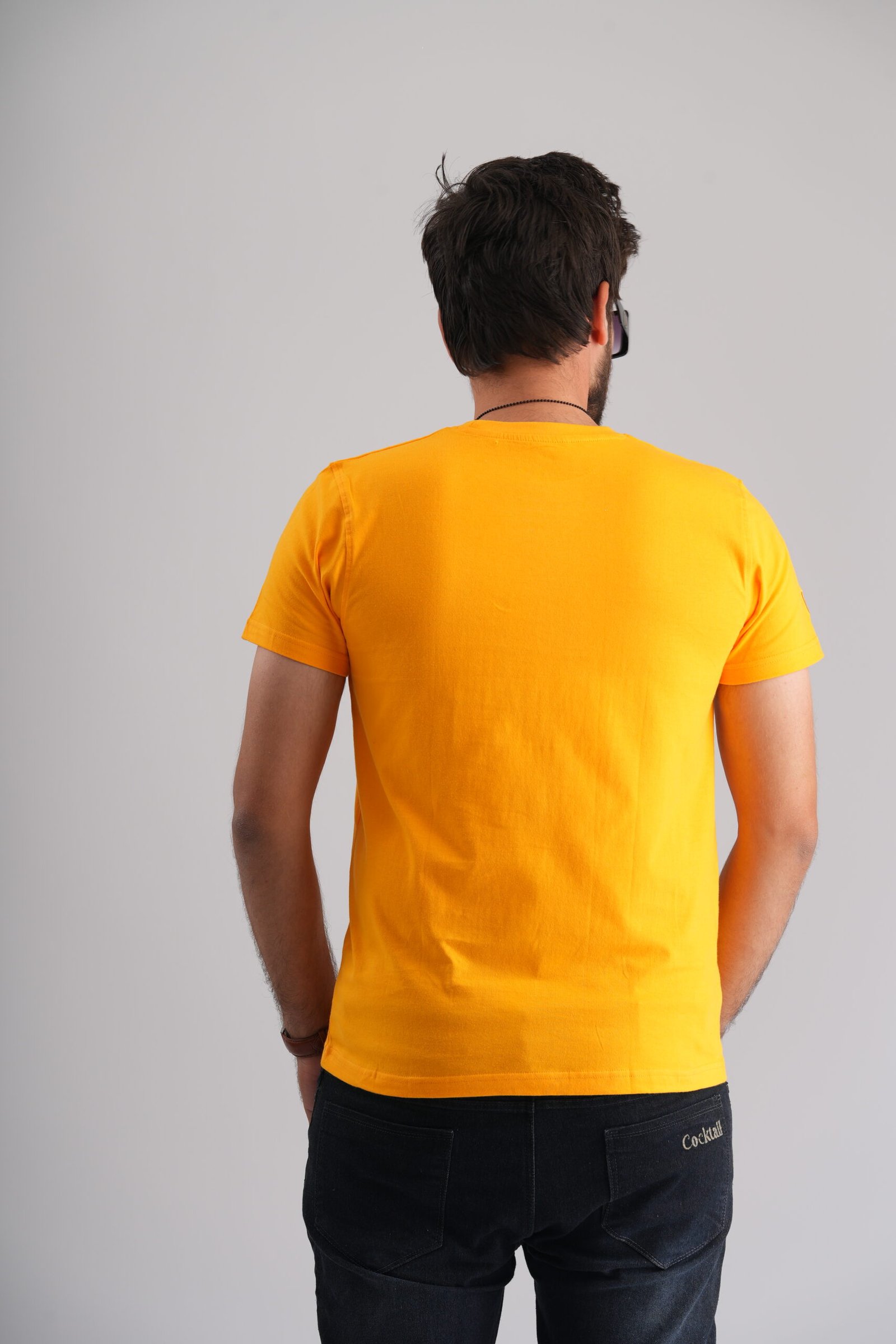Elevate your style effortlessly with Cocktail Fashion, where comfort meets sophistication in this deep Yellow Round Neck T-Shirt. |